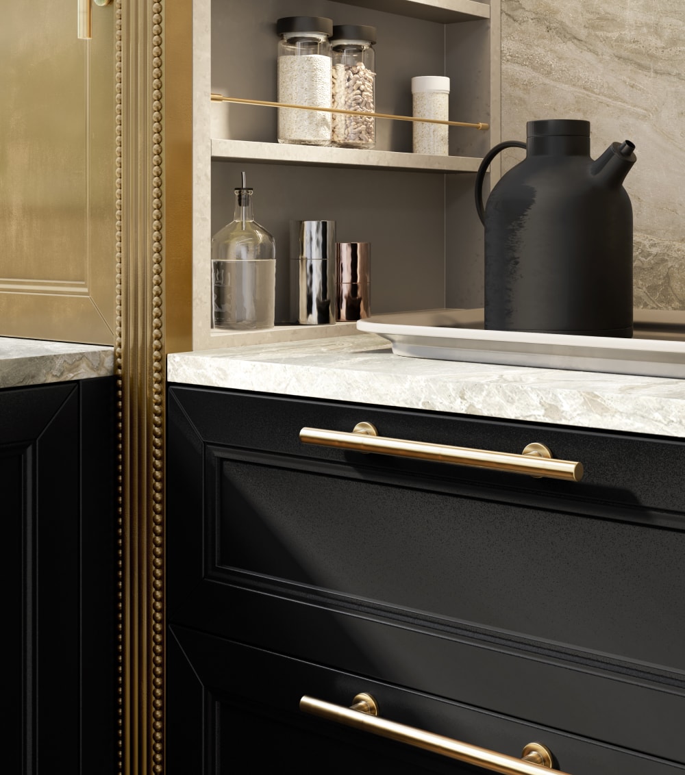 Geniş ve düzenli depolama alanları sayesinde Neml mutfak, mutfak eşyalarınızı kolayca organize etmenizi sağlar. Ahşap ve metal detayların zarif kombinasyonu, mutfak alanınıza şıklık ve sıcaklık katarken, uzun ömürlü kullanım garantisiyle de güven verir.